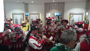 Gemeinsam mit der GroKaGe Gaggenau e.V. , begleitet von zahlreichen närrischen Gruppierungen aus den umliegenden Ortschaften, konnte die Verwaltungsspitze erfolgreich entmachtet werden. Leider setzte auch in diesem Jahr wieder der Regen ein, was aber nicht so schlimm war, da uns auch in diesem Jahr wieder ein Empfang bei Maisch Optik erwartete, wo wir uns ebenfalls musikalisch bedankten. Den Abend ließen einige von uns noch im Ratsstübel ausklingen.